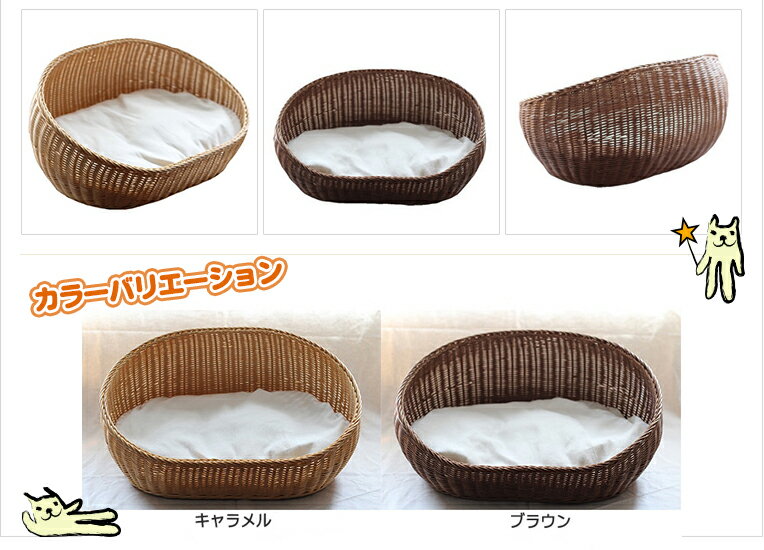 雑貨 ペット カドラー ベッド バスケット かご 籐 ラタン アジアン ナチュラル 軽い 自然 天然素材 オシャレ クッション 犬用 猫用 カントリー シンプル アンティーク 寝床 温かい ふんわり 通気性 ハウス/